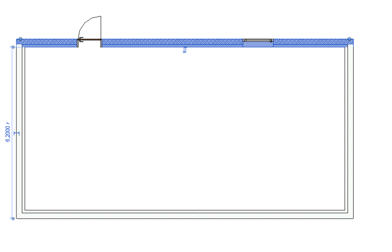 Nach dem gbXML-Export ist zu erkennen, dass Revit nur die 10 cm dicke Schicht mit der Tür erkennt; die Wandöffnung bleibt jedoch unerkannt.