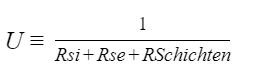 Der U-Wert wird dann als Kehrwert der Summe dieser Widerstände sowie der Wärmeleitfähigkeit der einzelnen Schichten berechnet:
